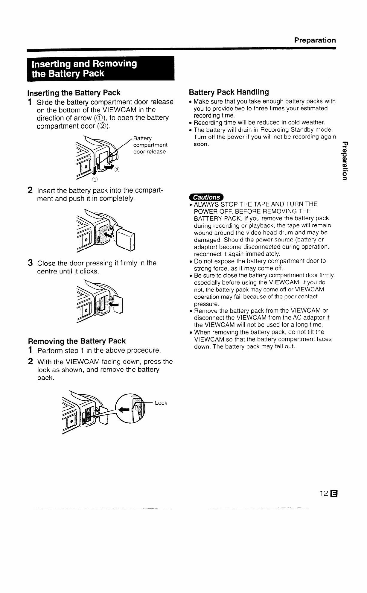 not, the battery pack may come off or VIEWCAM
