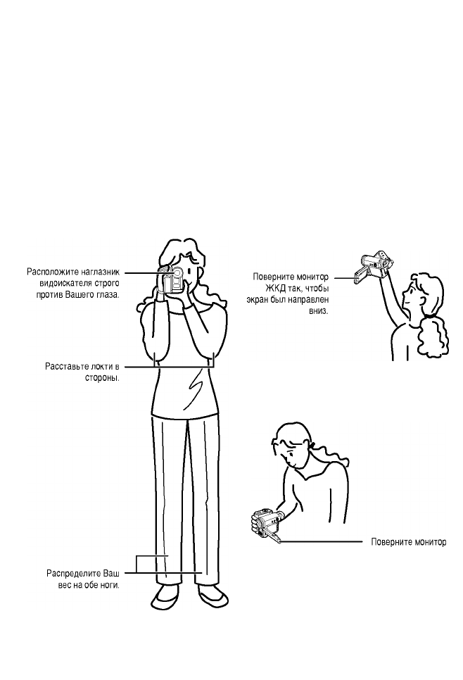 старайтесь производить съемку в положении стоя, держа камкордер неподвижными руками во