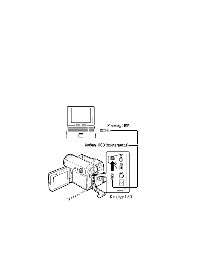 8 Подсоедините камкордер к ПК при помощи прилагаемого кабеля USB, как показано на