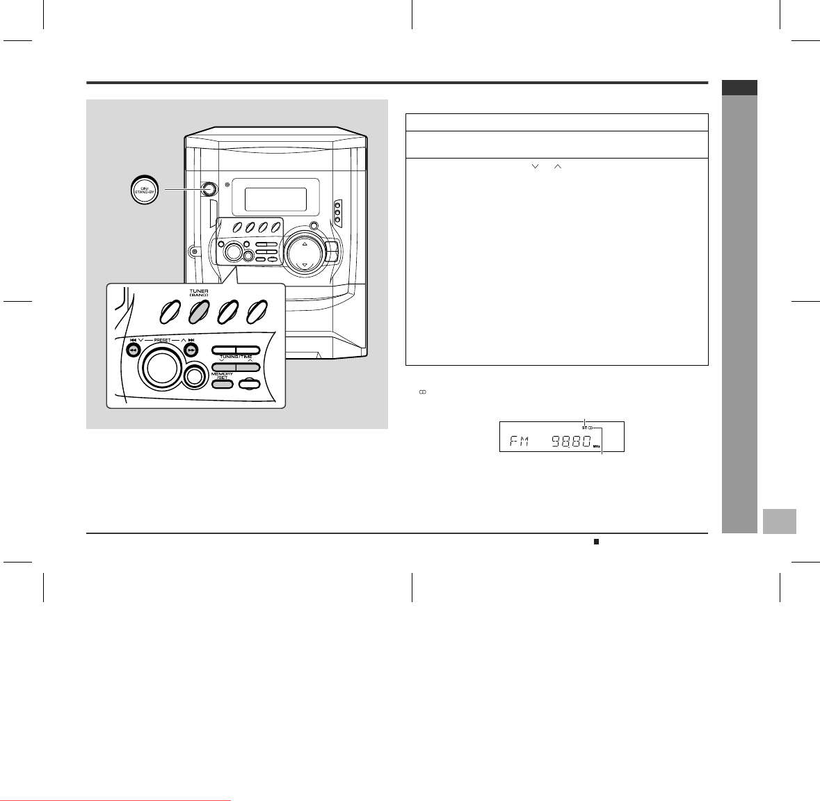 Press the TUNER (BAND) button to display the "ST" indicator.