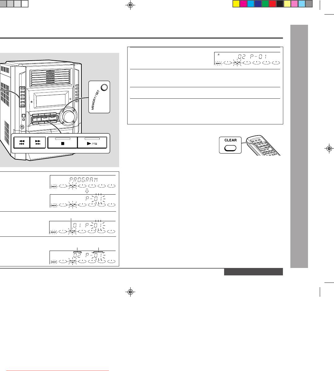 Whilst in the stop mode, press the CLEAR button. The “MEMORY” indicator will disap-