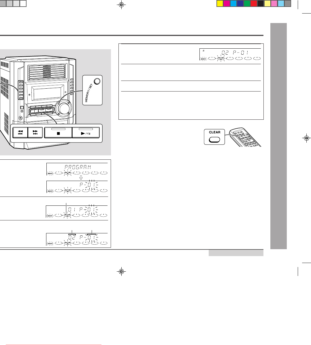 En mode d’arrêt, appuyer sur la touche CLEAR. “MEMORY” disparaît et toute la