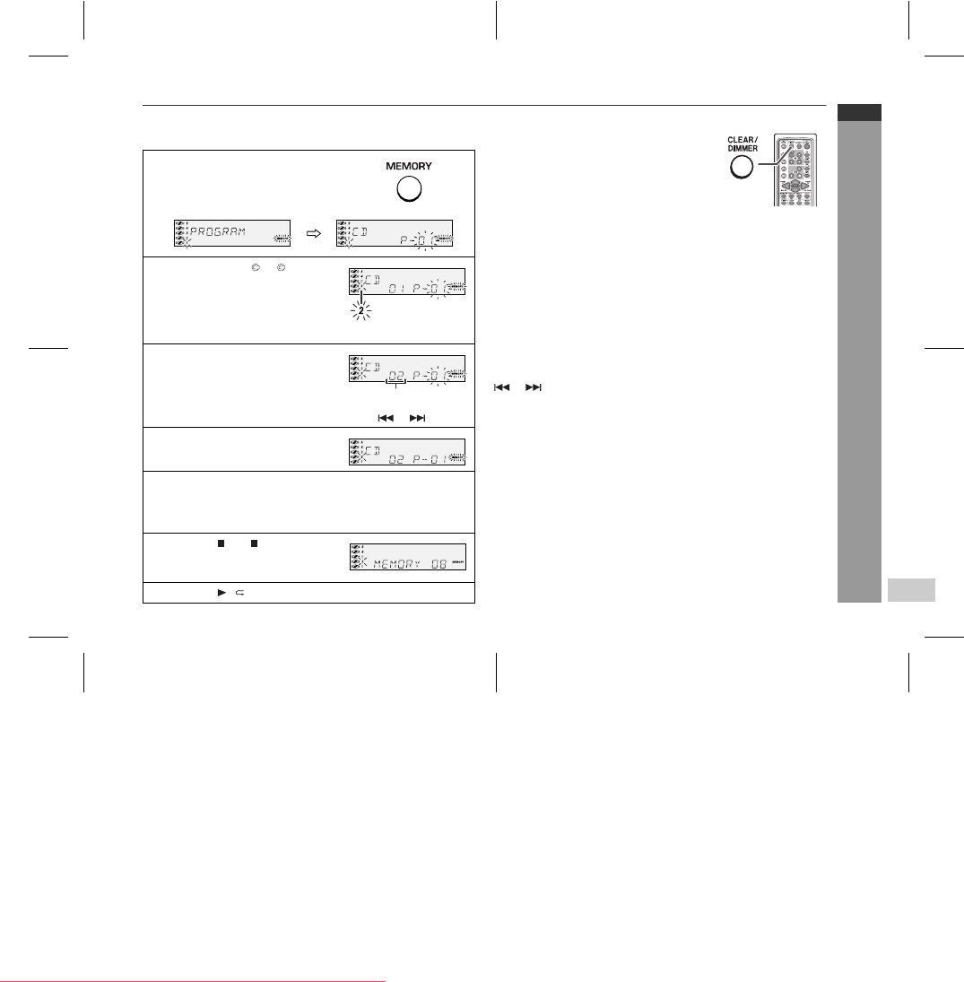 CLEAR/DIMMER button on the remote control. The "MEMORY" in-