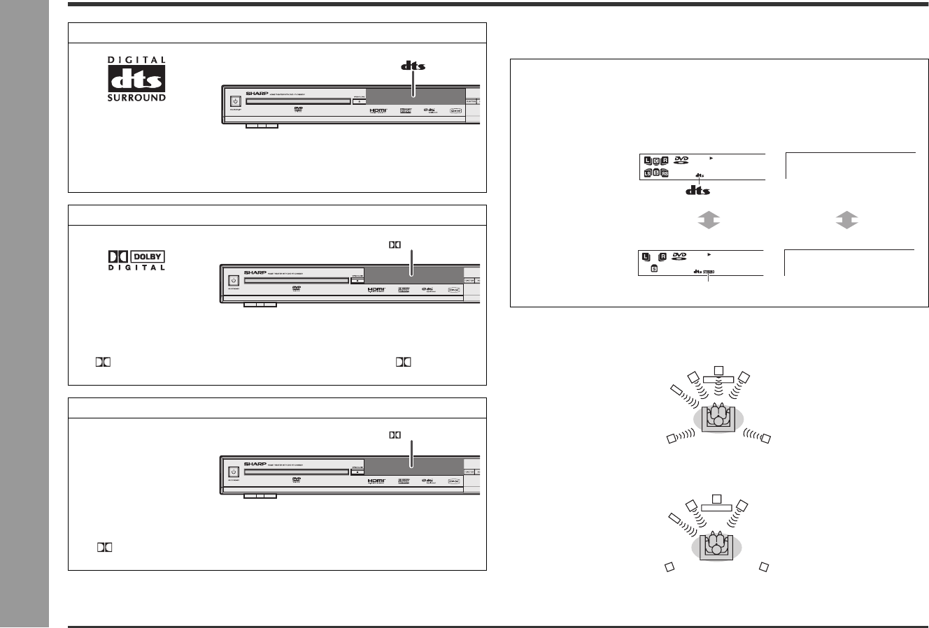 The DTS indicator will light up when the disc recorded in DTS is played back.