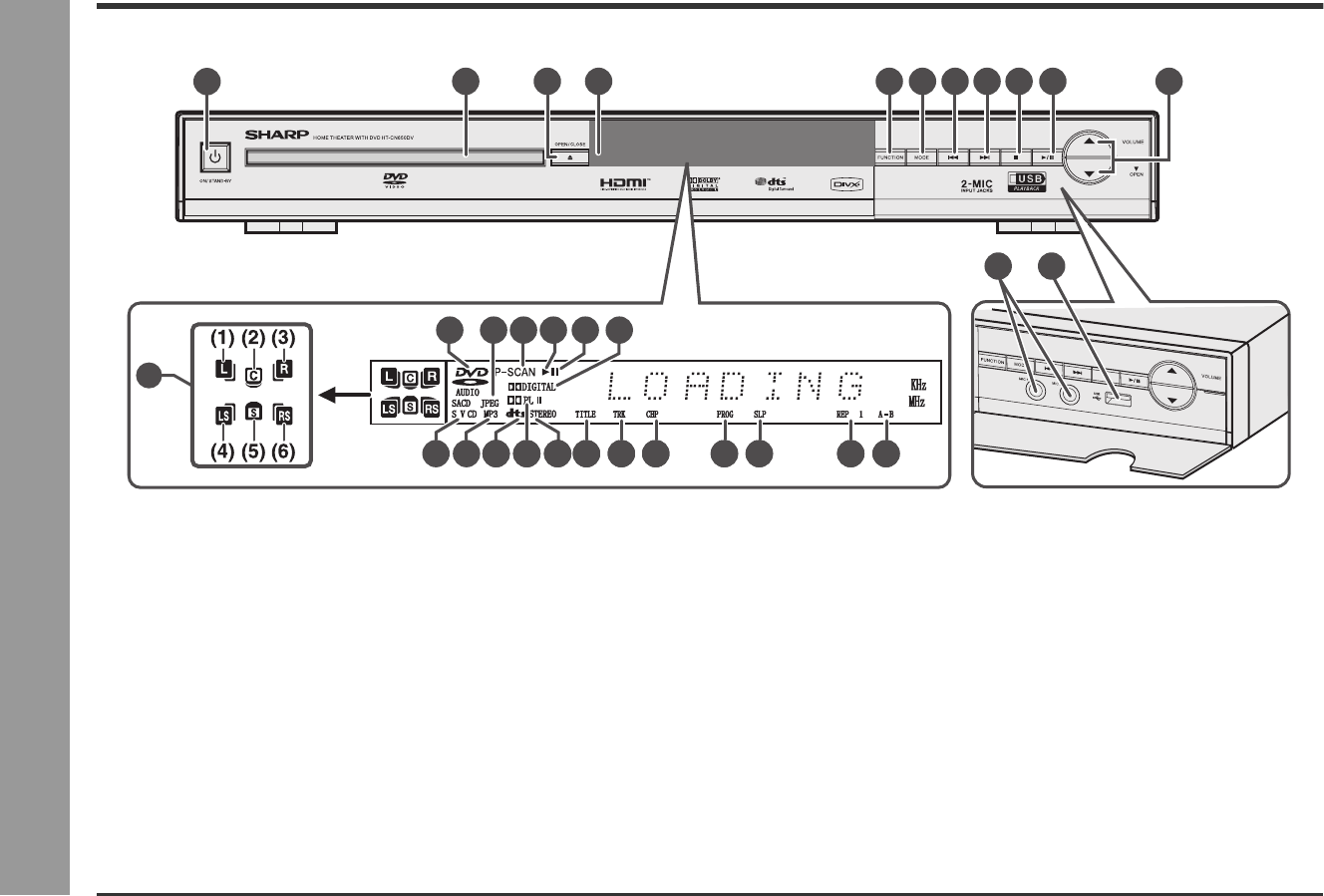 8.Chapter (track) Skip Up or Preset/Tuning Up Button . . . . . . . 29, 44