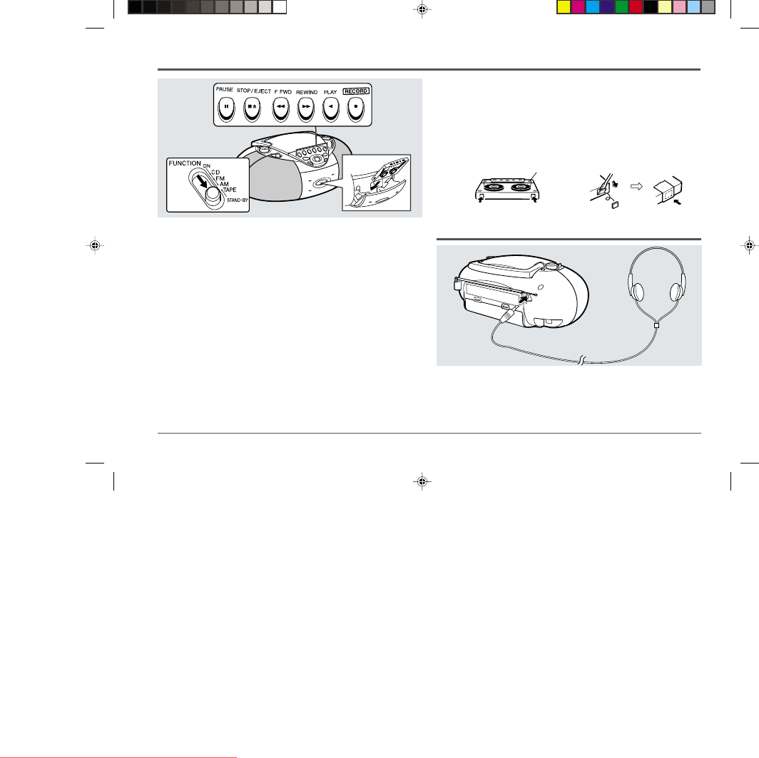 ● Cassettes have removable tabs which prevent accidental recording or