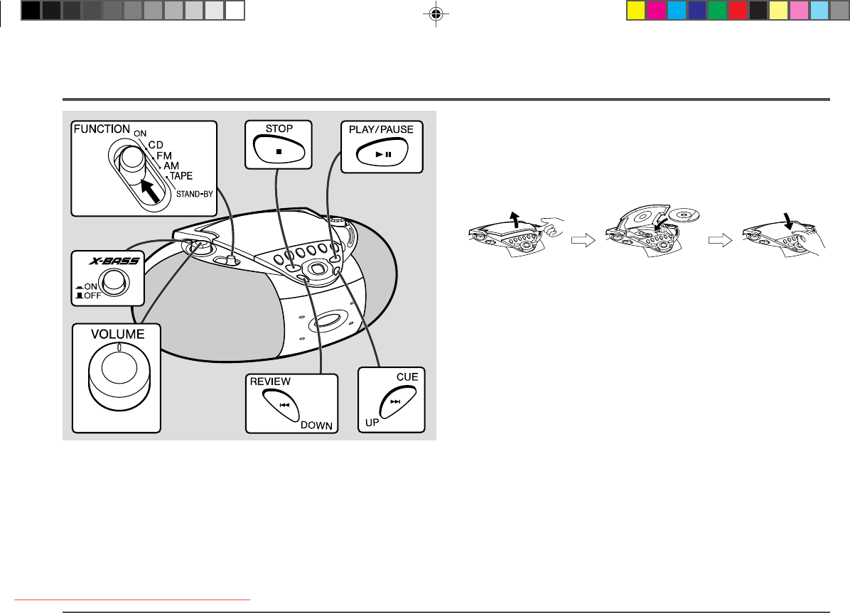 3 Mettre un CD en place, côté imprimé vers le haut.