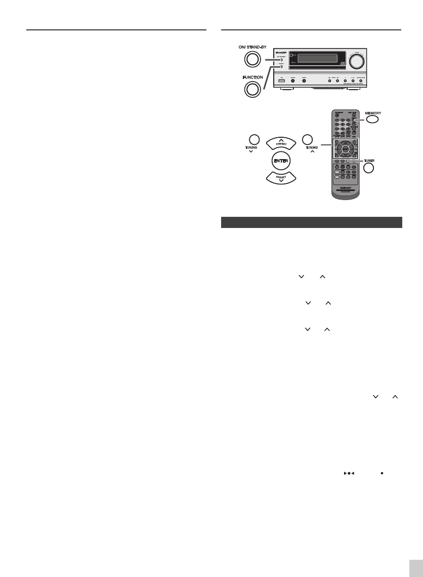 ● To stop the auto tuning, press the TUNING ( or )