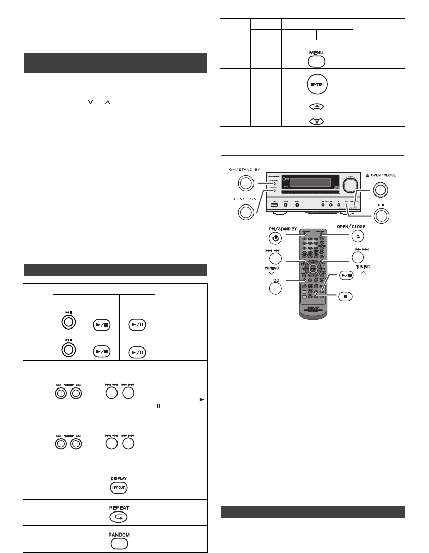 Function Main unit Remote control Operation