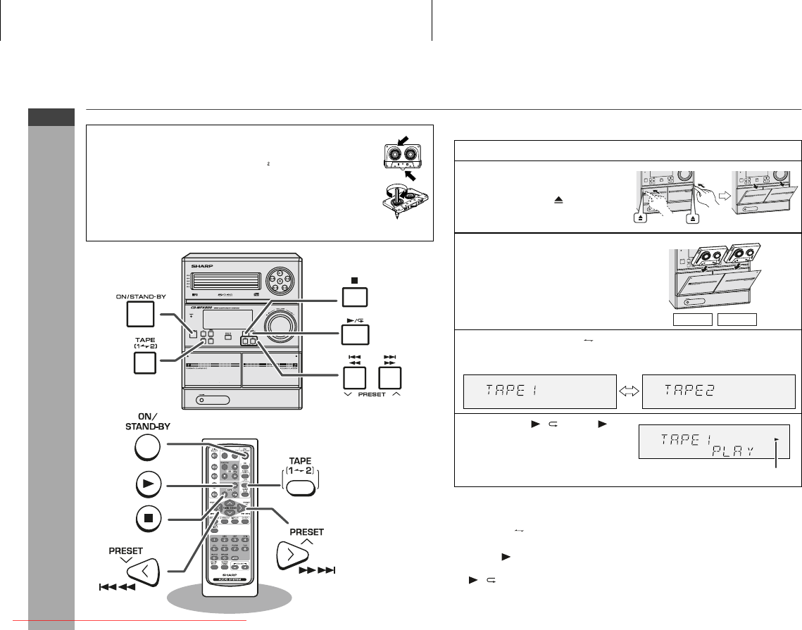 TAPE (1 2) button (main unit and remote control): The unit turns
