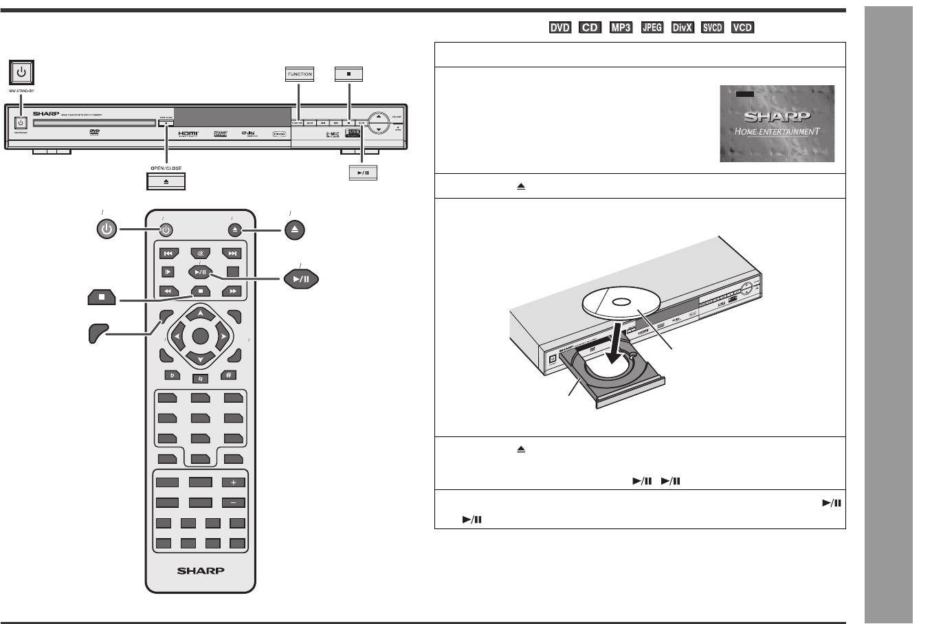 5 Press the OPEN/CLOSE button to close the disc tray.