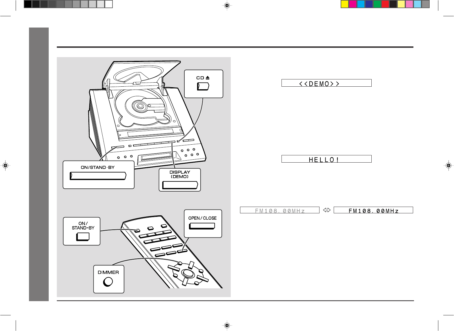 When the unit is in the power stand-by mode, press the DISPLAY (DEMO) button