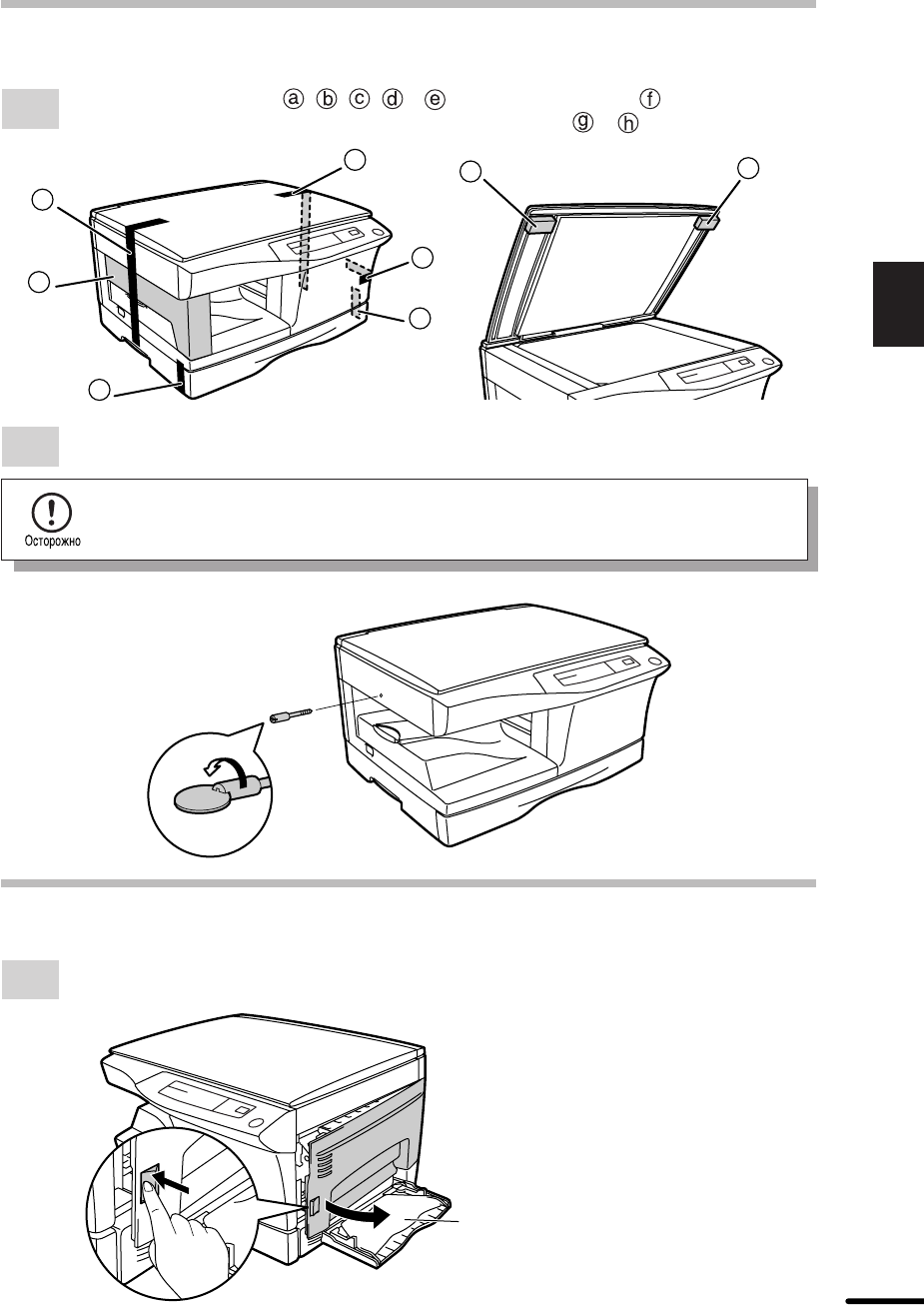 Снимите части ленты , , , и и защитную крышку . Затем откройте