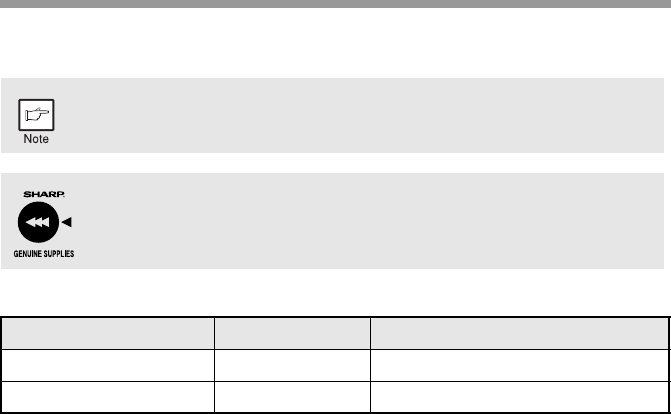 Be sure to use only genuine SHARP parts and supplies.