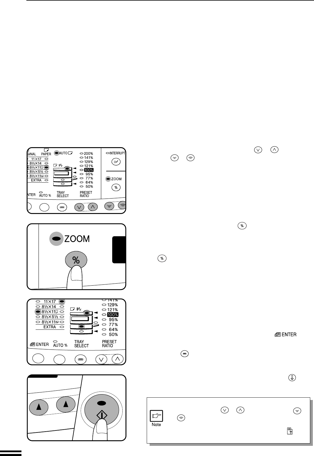 zoom ( , ) keys to change the copy ratio in the