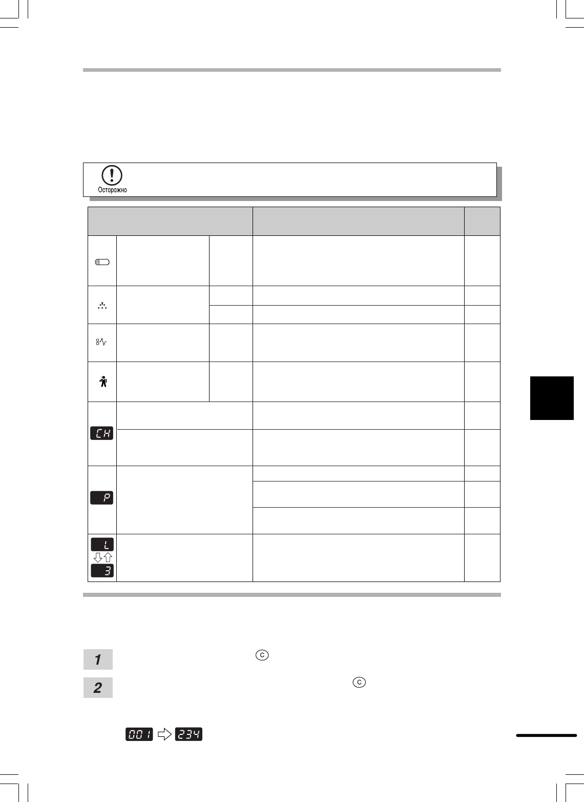 "Р" мигает на дисплее.