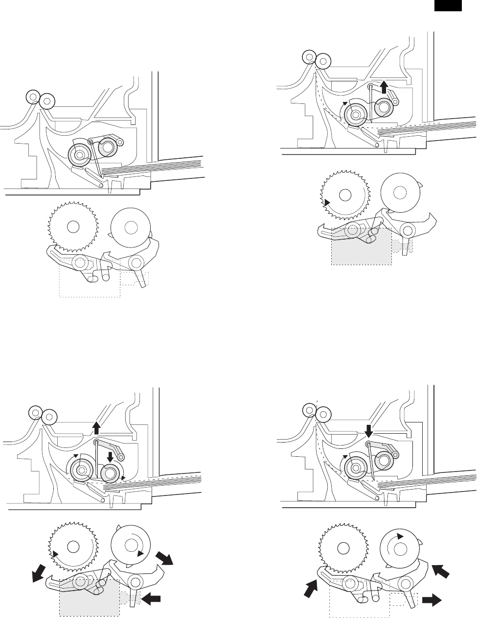 3) When pawl C of the manual paper feed clutch sleeve is hung on the