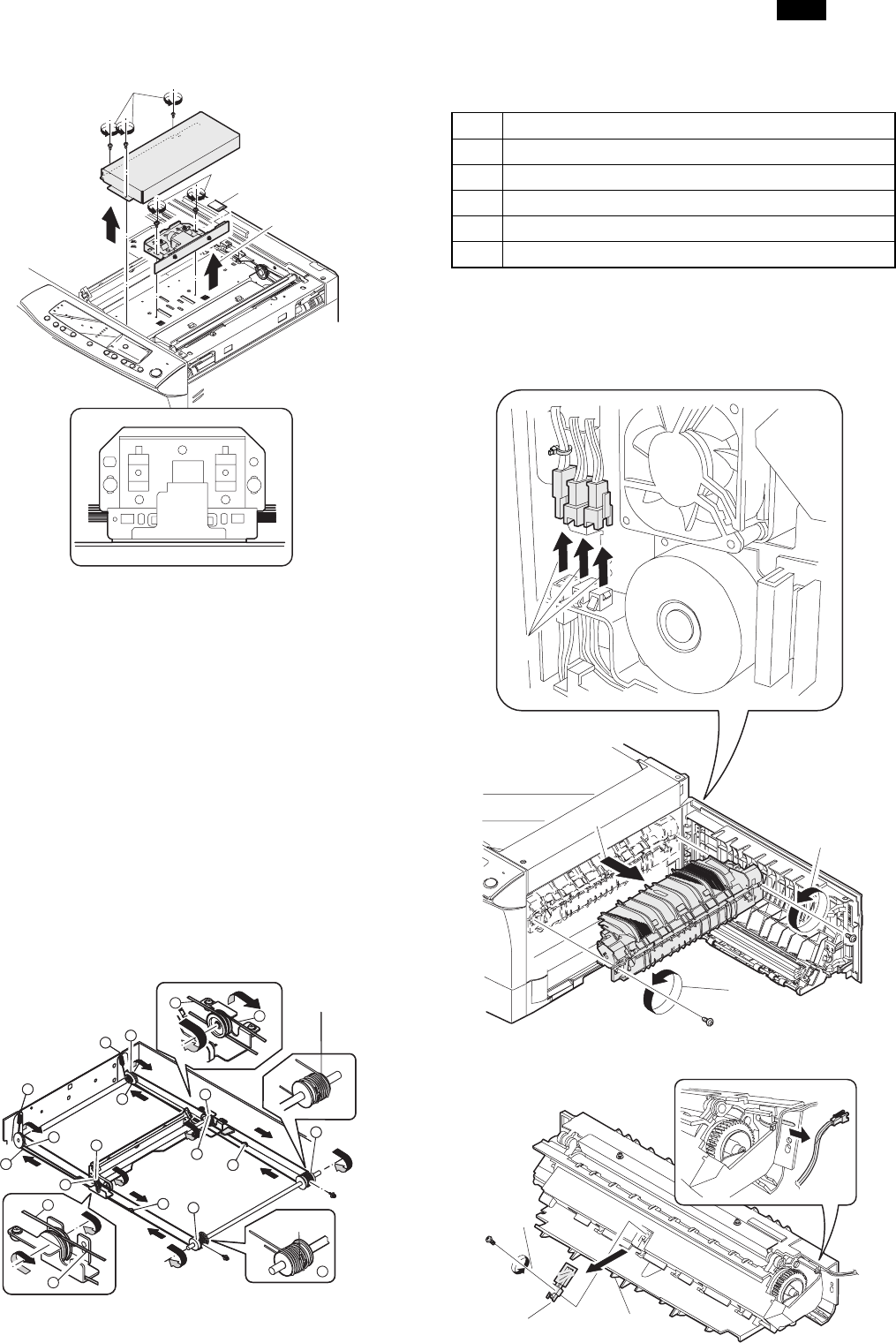 (5) Remove the screws (2 pcs.), the harness, and the optical unit.