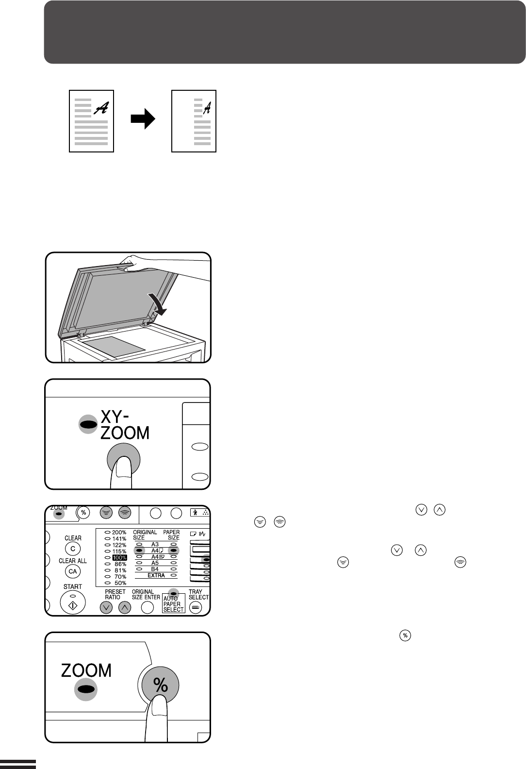 The XY ZOOM feature allows the horizontal and vertical copy ratios to be