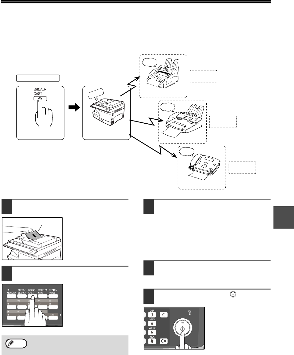 automatically dialed in succession, and the original is transmitted to each location.