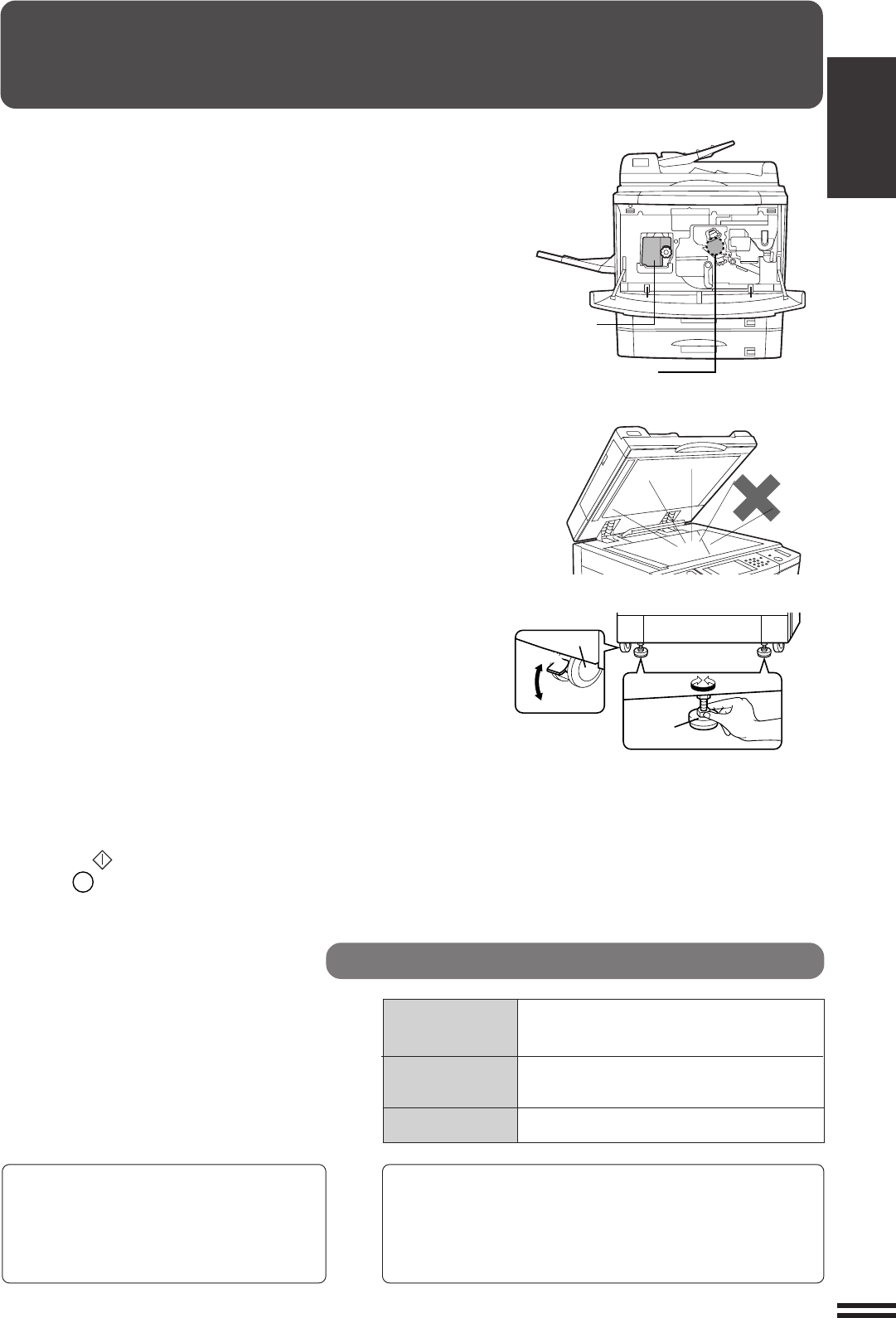 care not to subject the copier to any vibration or shock.