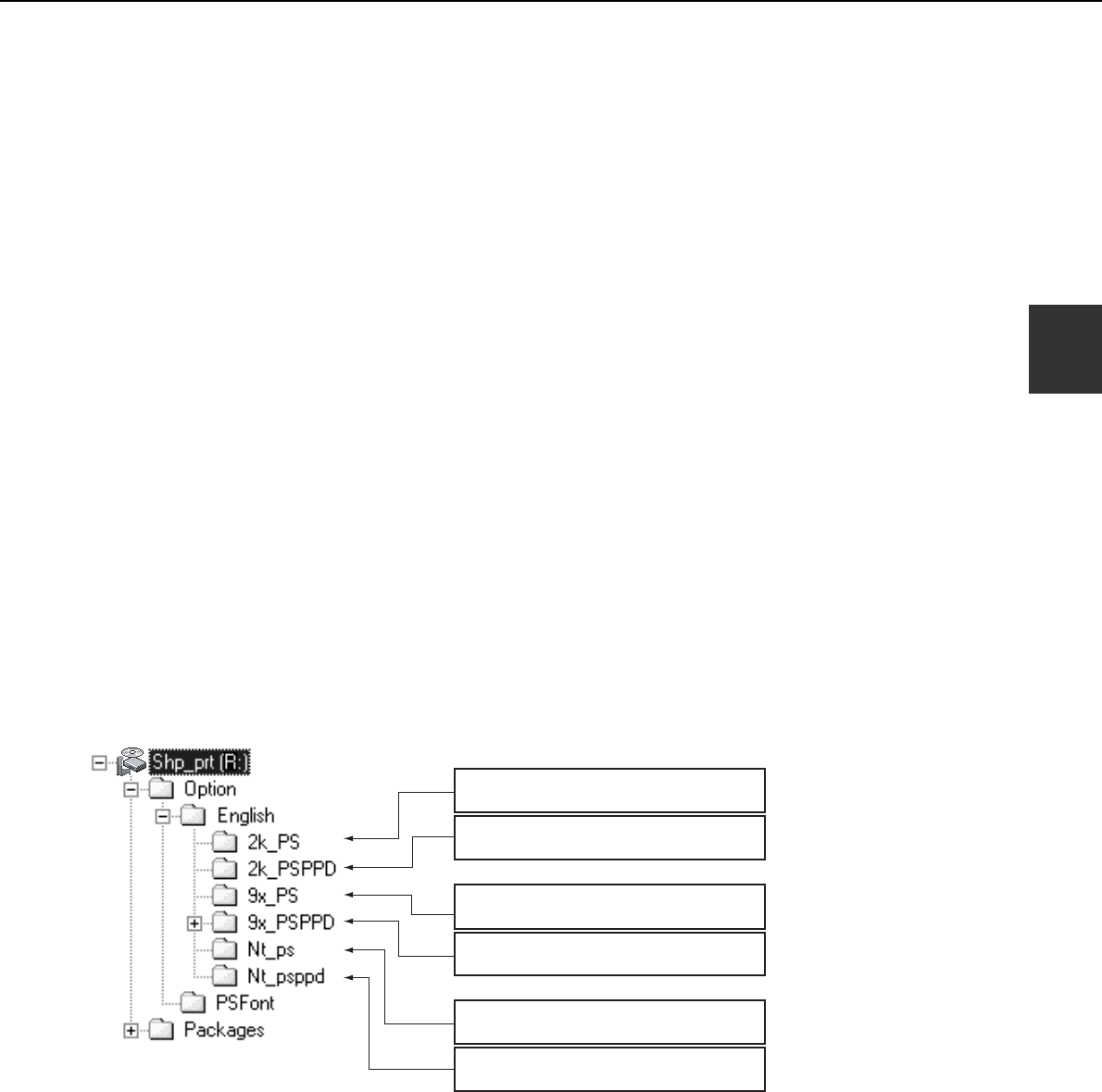To install the PostScript printer driver using the “Add Printer” wizard in place of using the installer, enter the directory