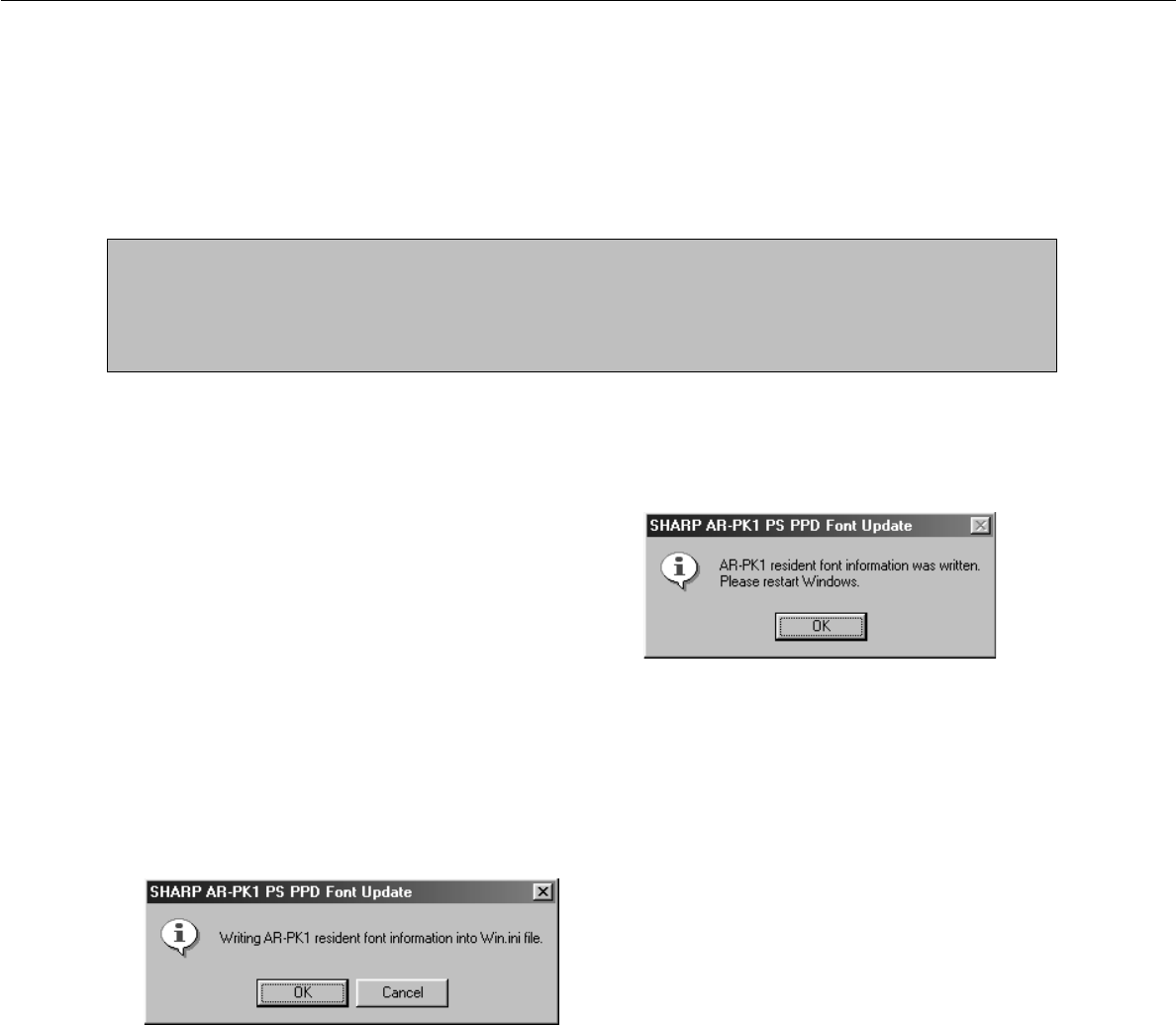 ■ Installing the resident font information for PPD (Windows 95/98/Me)