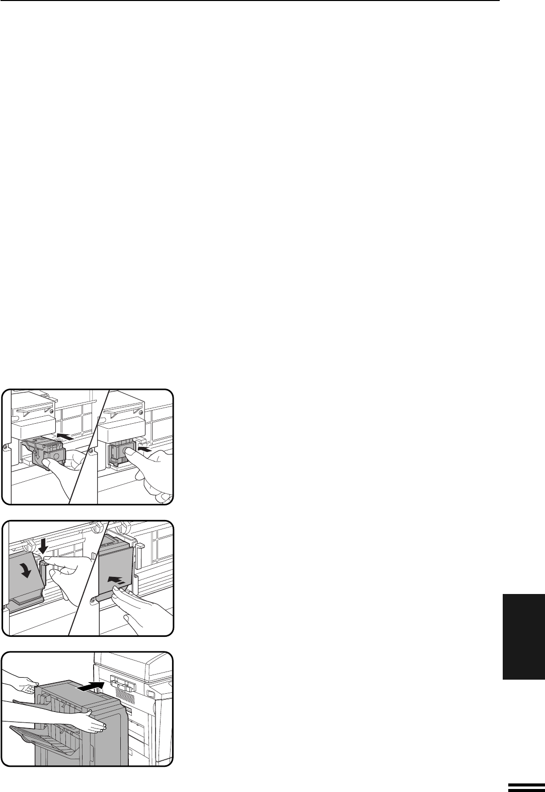 Вставьте блок картриджа в степлер до упора (должен