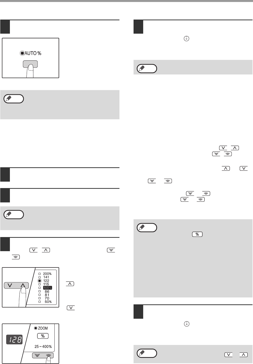 Copies can be reduced down to 25% or enlarged up to 400%. The [PRESET RATIO] selector keys ( , ) can