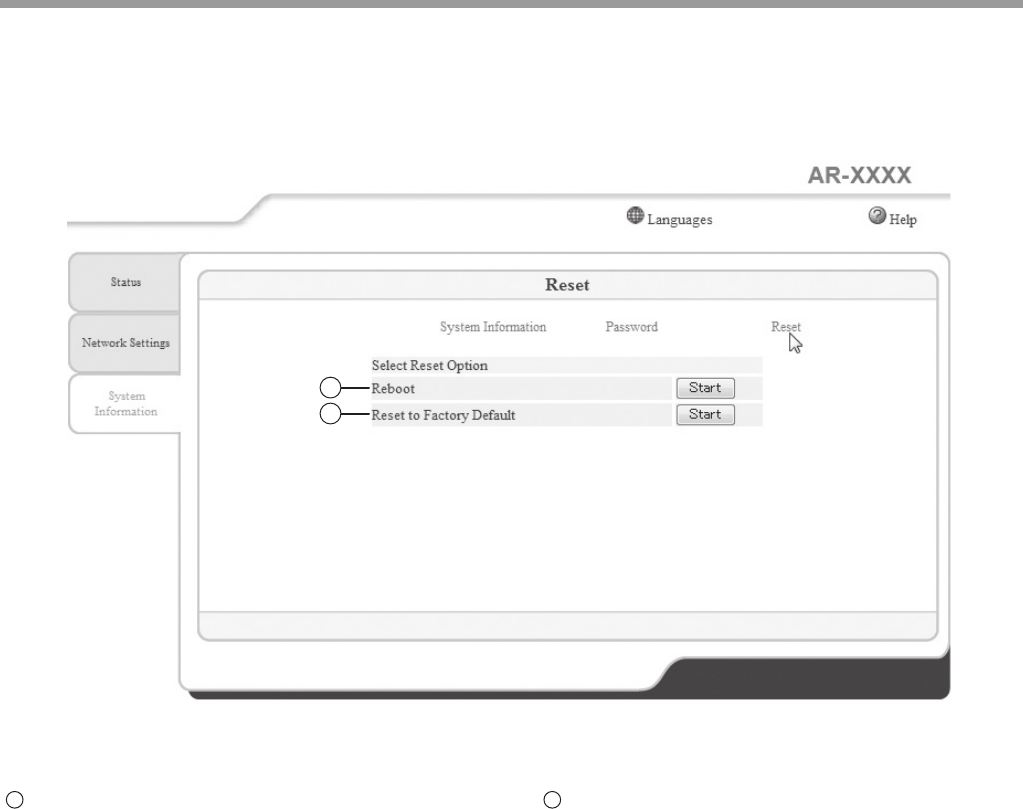 To display the "Reset" window, click "Reset" on the "System Information" tab.