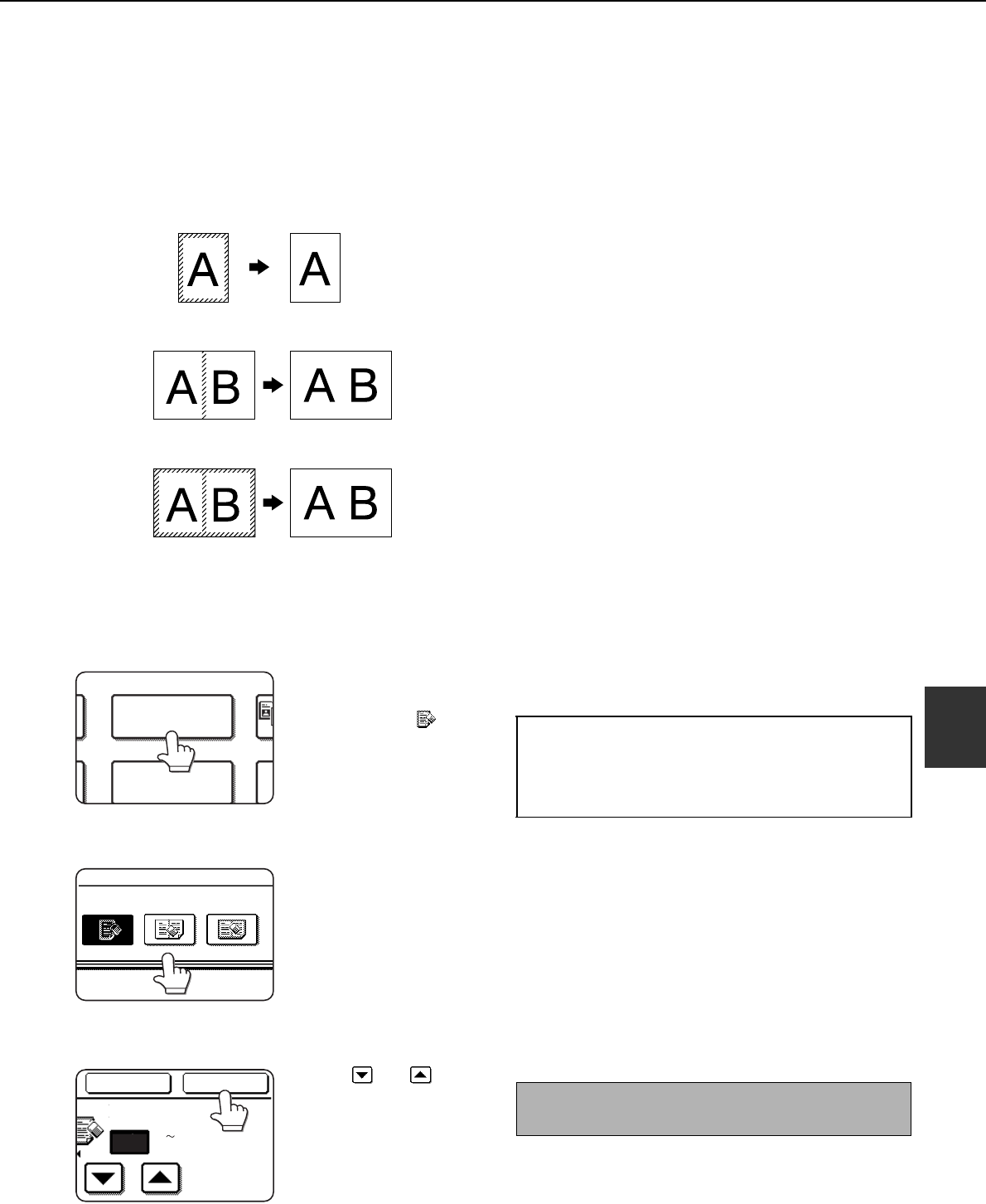 The erase function is used to erase the shadow lines on copies produced when copying thick originals or books. The