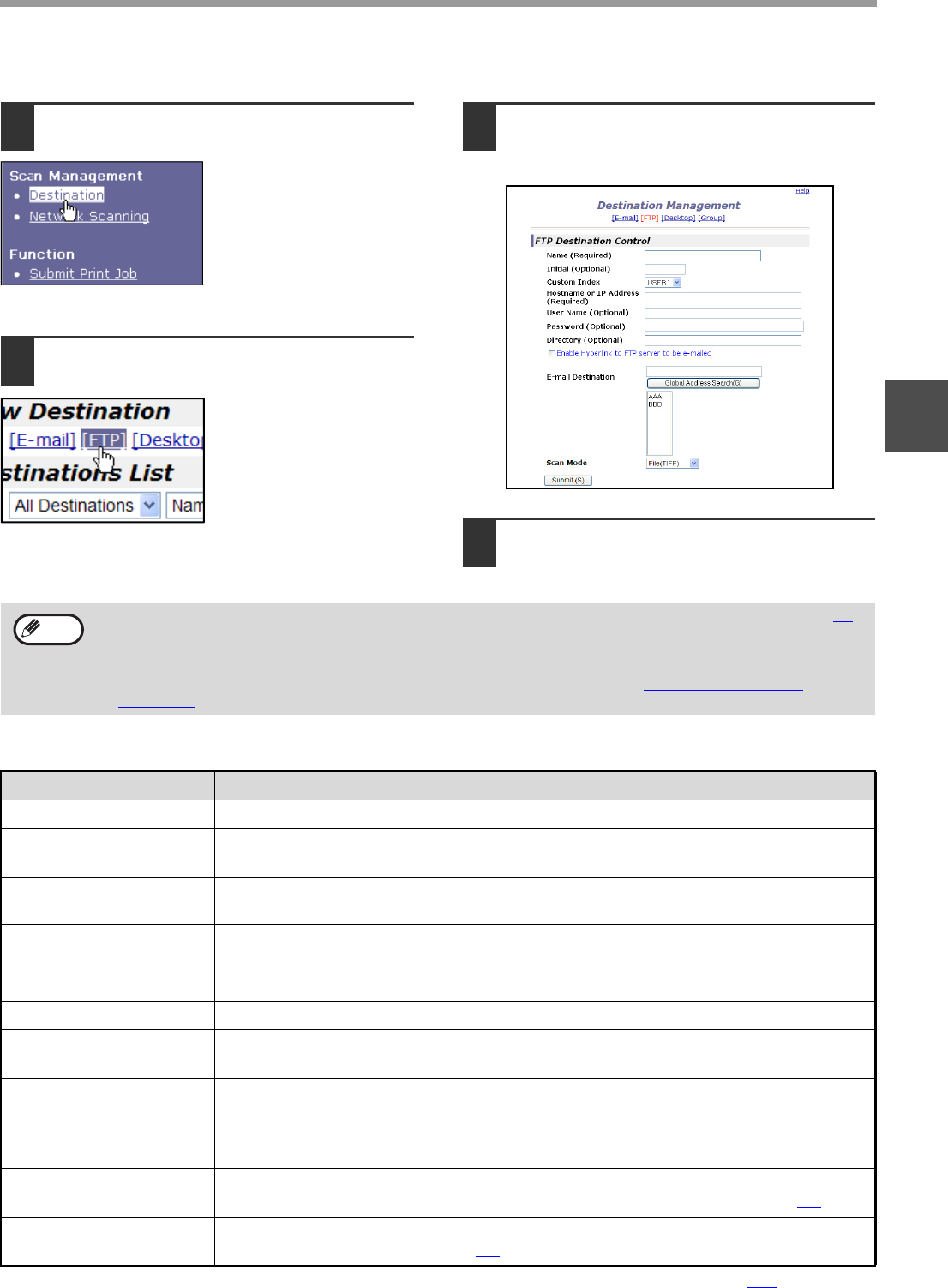 *2 To perform Scan to FTP (Hyperlink), you must also enter the settings for the e-mail server.