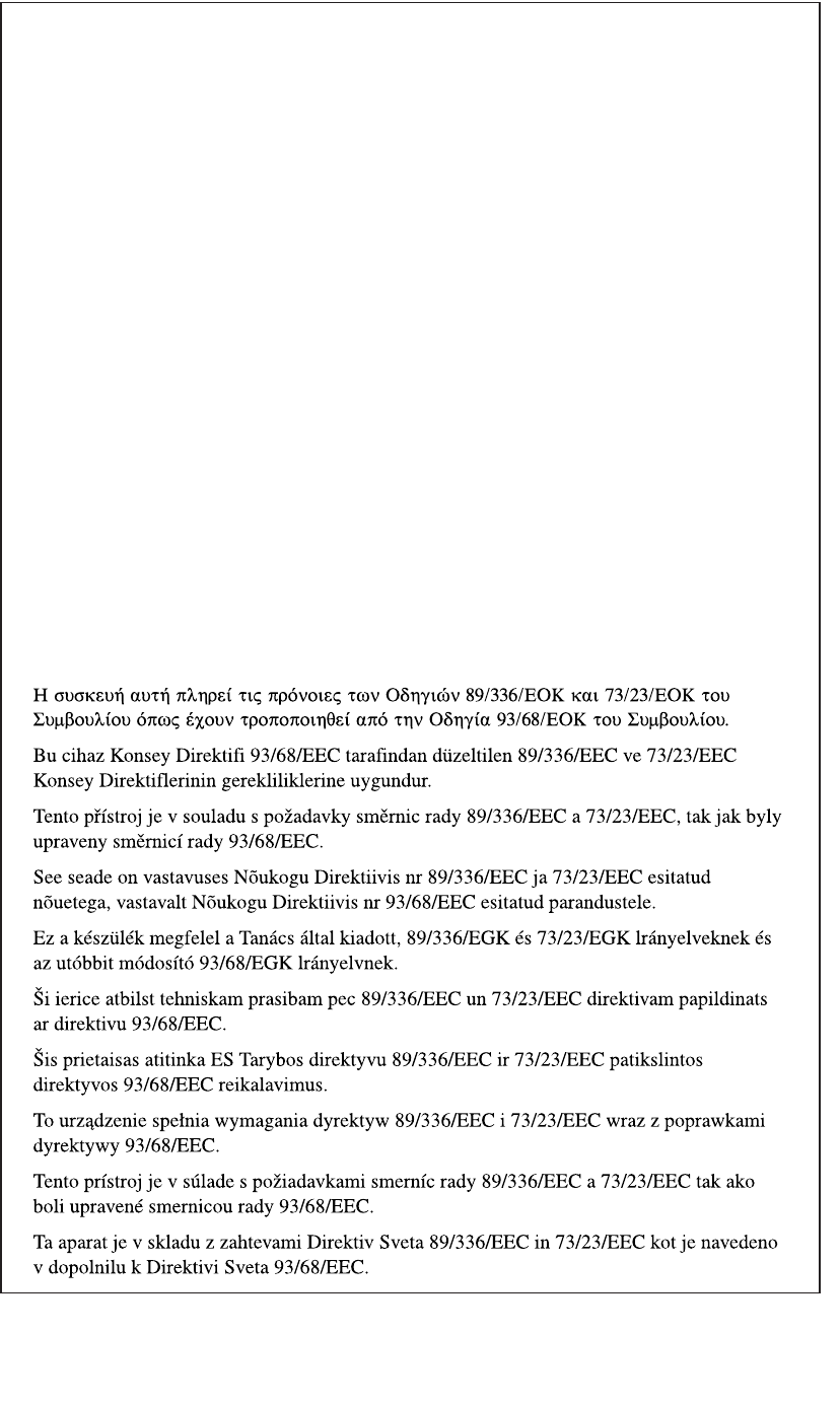 Tämä laite täyttää direktiivien 89/336/EEC ja 73/23/EEC vaatimukset, joita on muutettu
