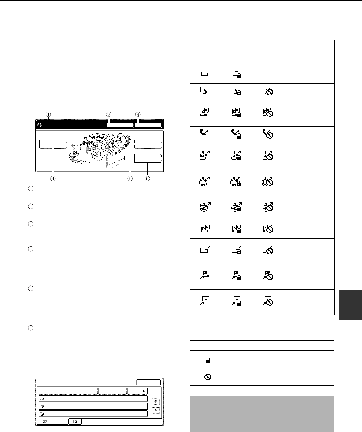 shows the copy mode screen, image send mode, or the