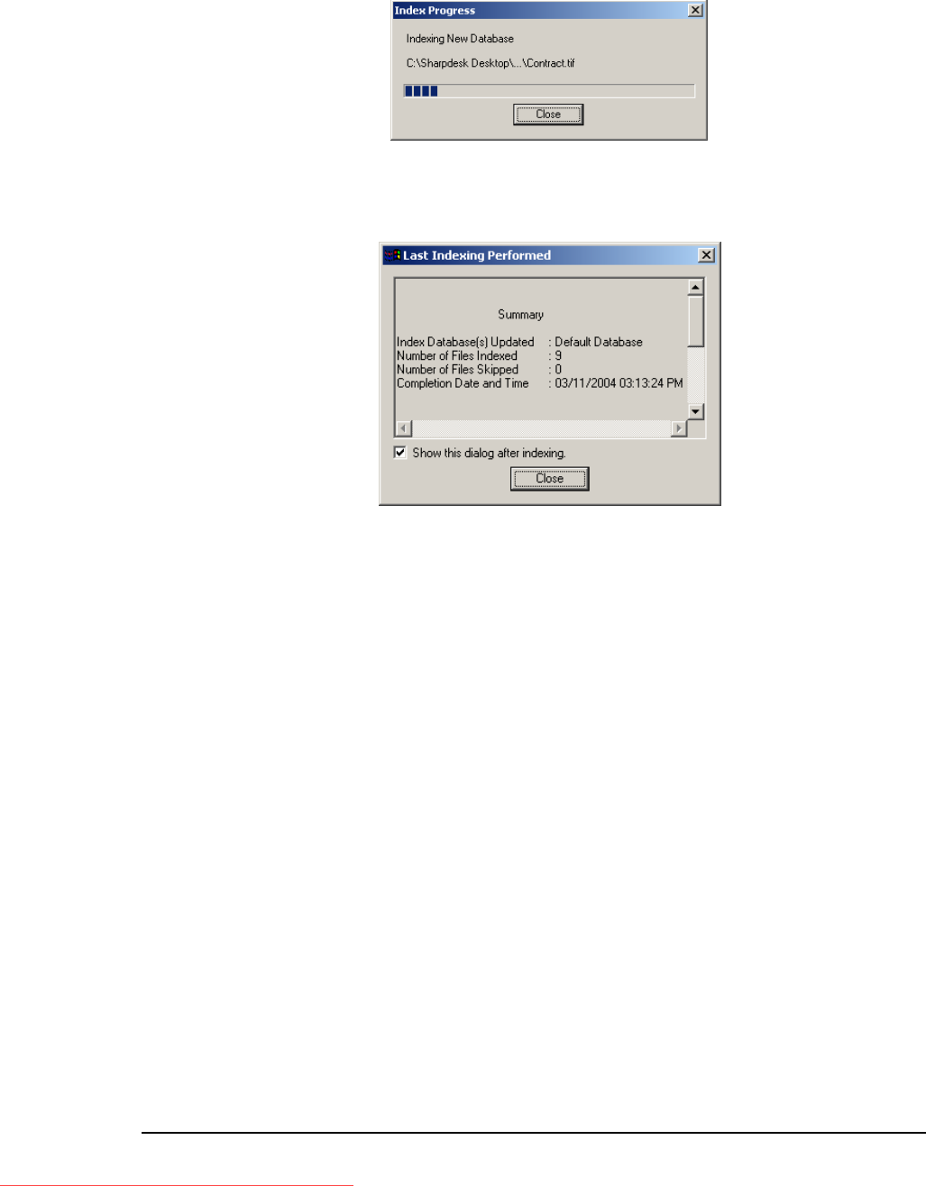 time. Note, that if the dialog is open prior to completion of a current indexing operation,