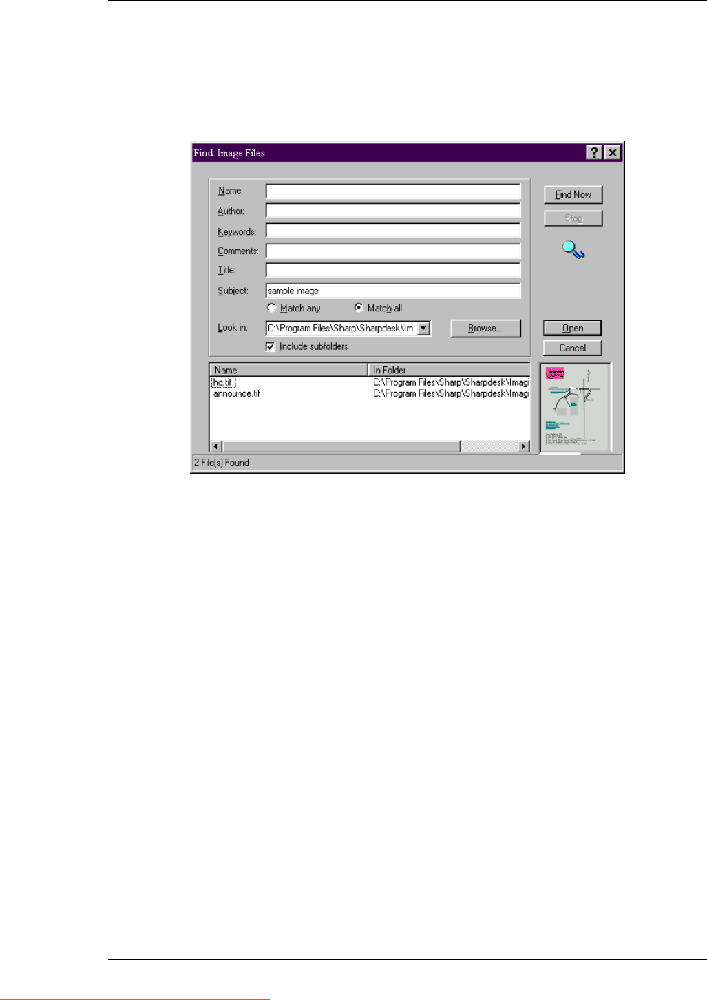 6. Click Find Now. The lower pane of the dialog displays the names of documents containing