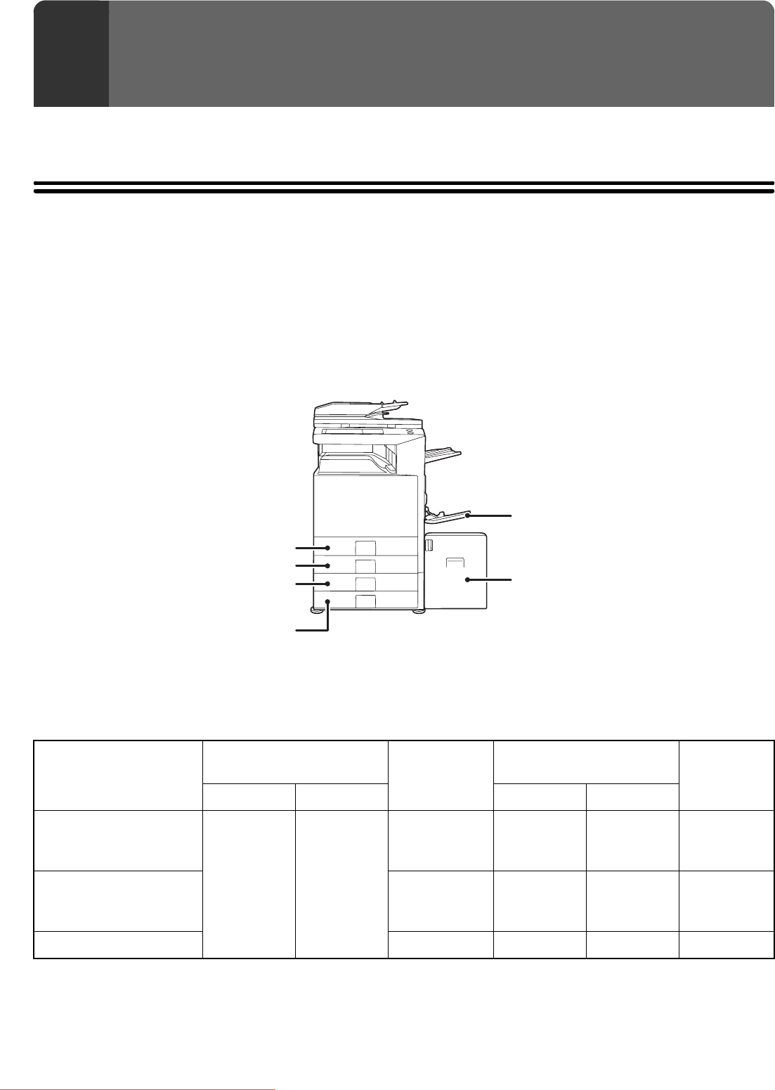 The explanations in this manual assume that a stand/2 x 500 sheet paper drawer and large capacity tray are installed.