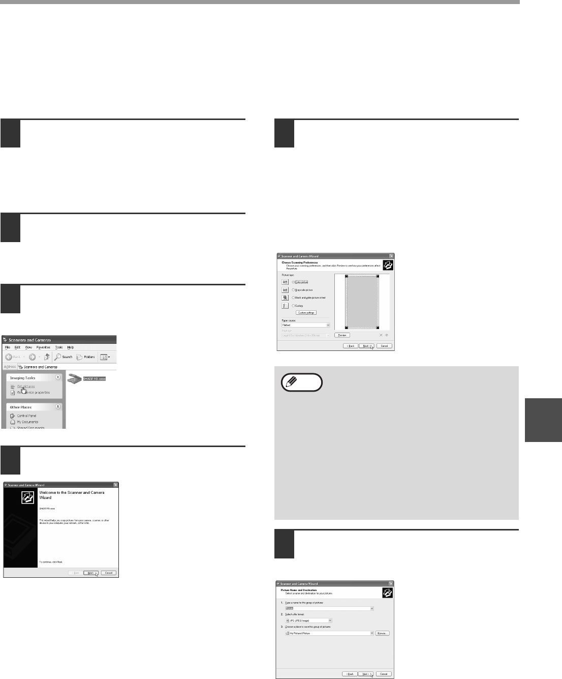 The procedure for scanning with the "Scanner and Camera Wizard" in Windows XP is explained here. The "Scanner
