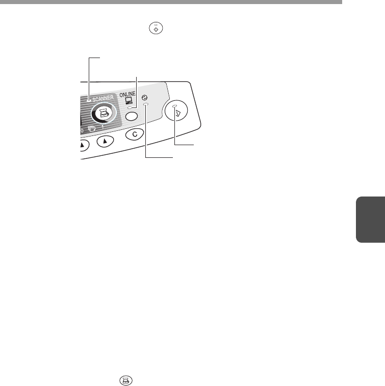 The ONLINE indicator and the start ( ) indicator indicate the state of the printer or