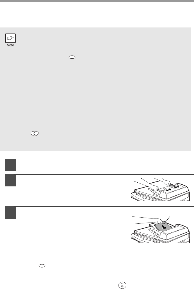 • To stop continuous copying using the SPF/RSPF, press the clear