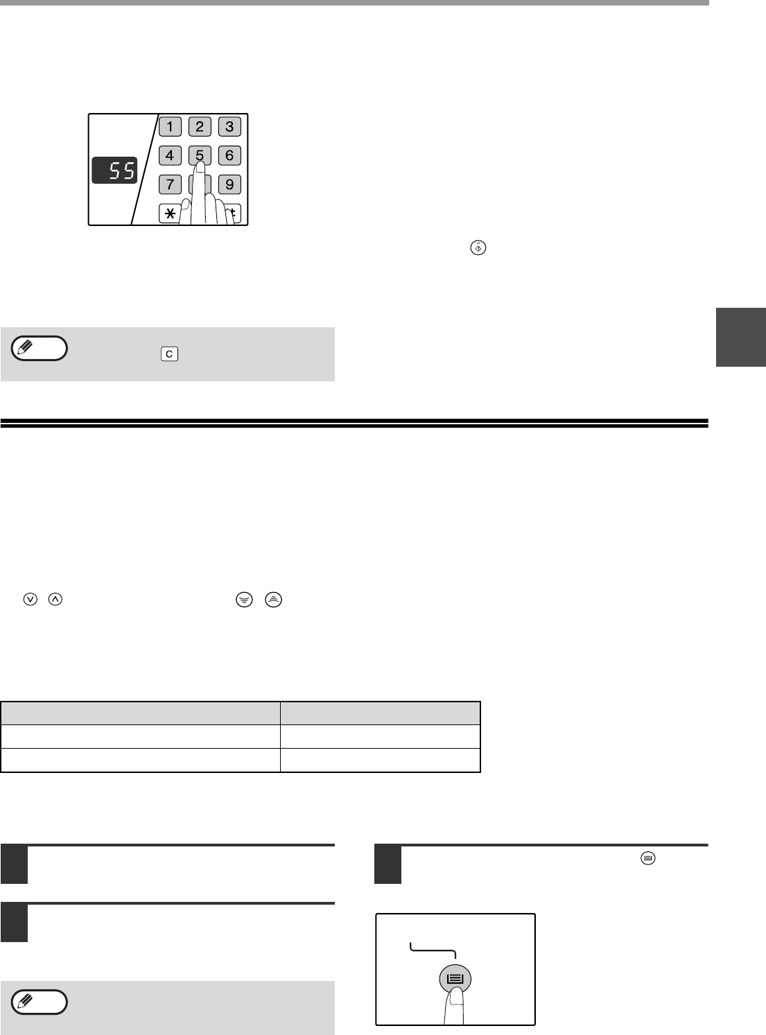 • Reduction and enlargement ratios can be selected manually with the [PRESET RATIO] selector keys