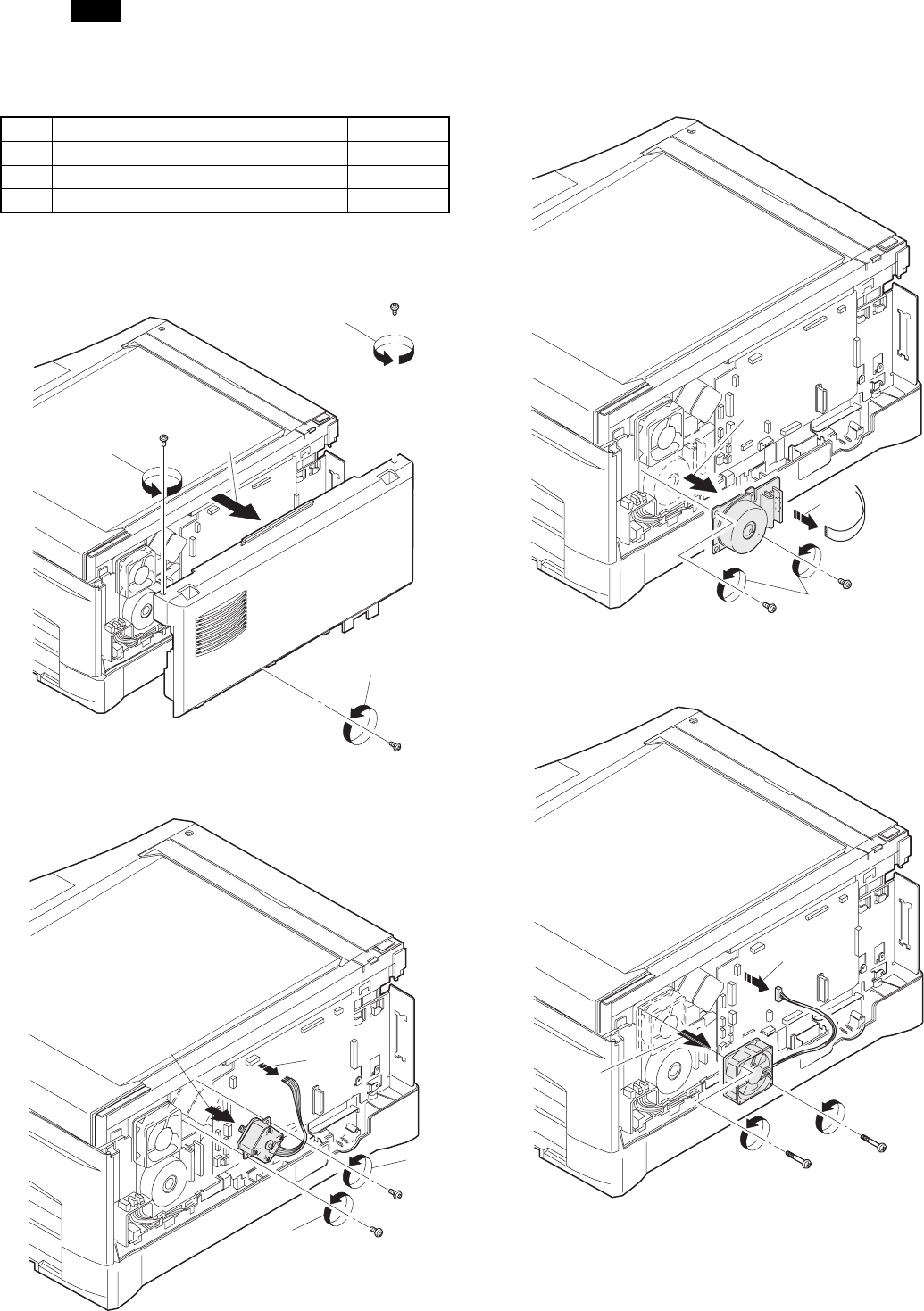 (1) Remove three screws and remove the rear cabinet.