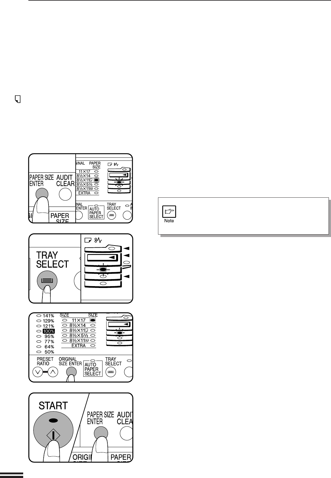 Each time the ORIGINAL SIZE ENTER key is pressed, a paper size