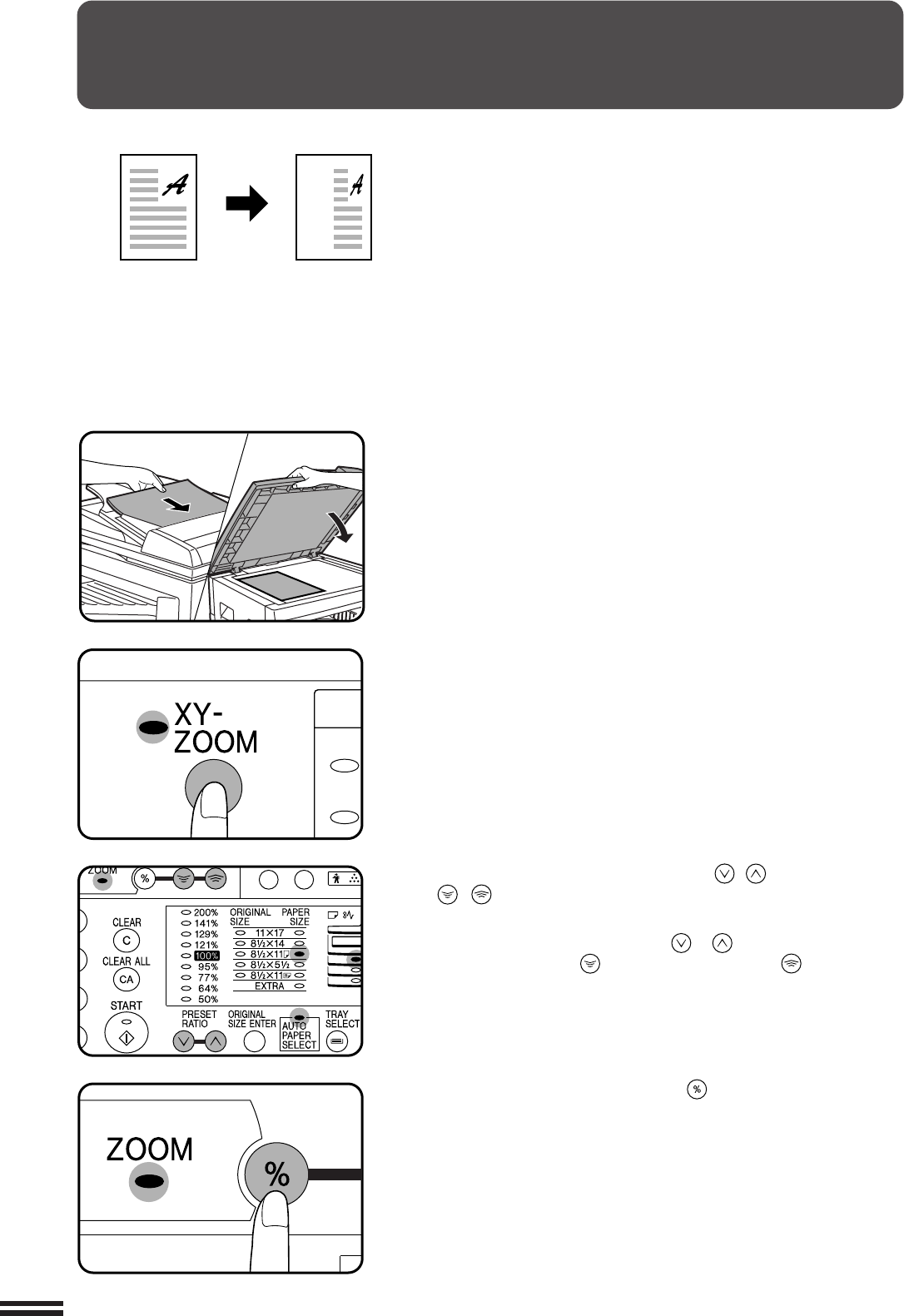 The XY ZOOM feature allows the horizontal and vertical copy ratios to be