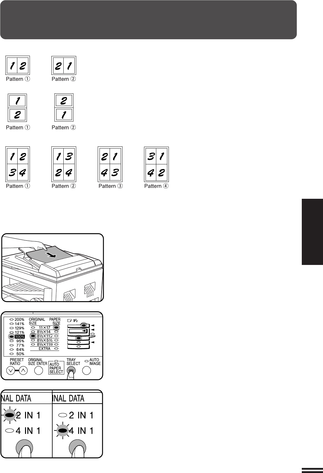 user programs. There are two patterns of layout for 2 in 1 copying and four