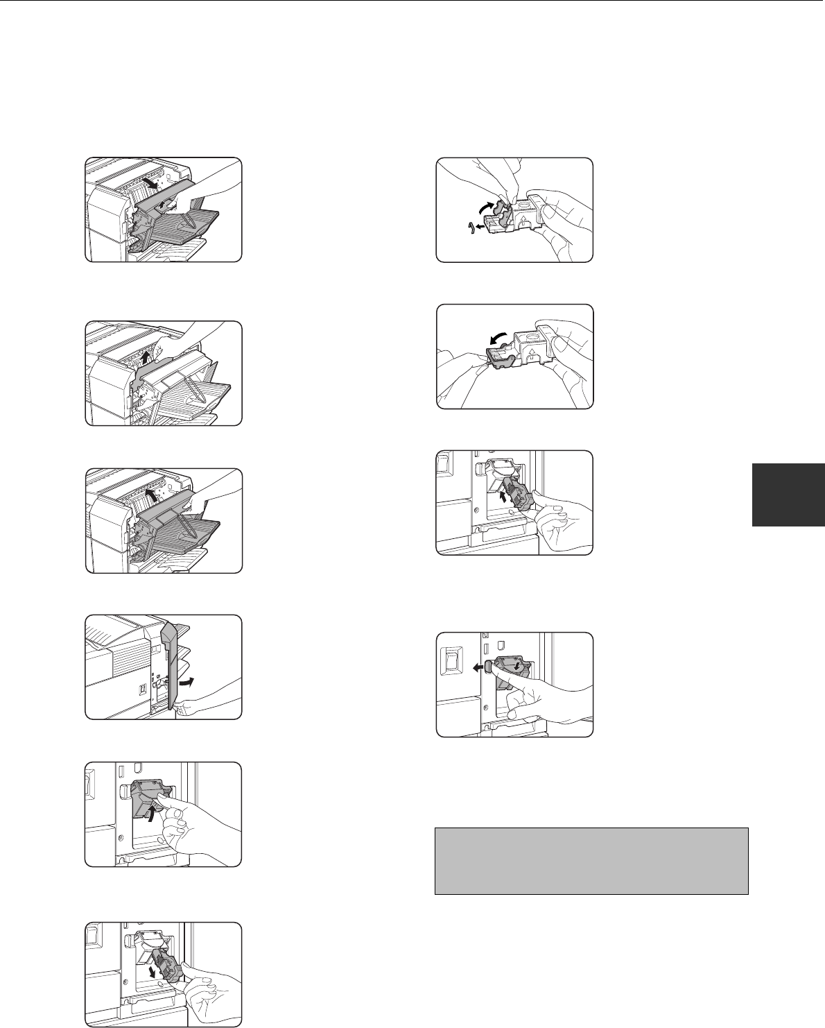 If the message “CHECK THE STAPLER UNIT” or “CHECK STAPLER POSITION OR STAPLER JAM” appears, follow