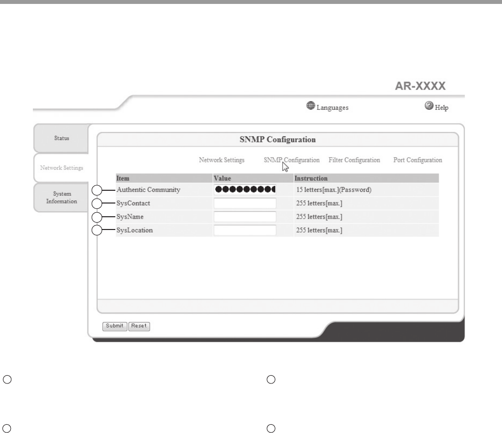 To display the "SNMP Configuration" window, click "SNMP Configuration" on the "Network Settings" tab.