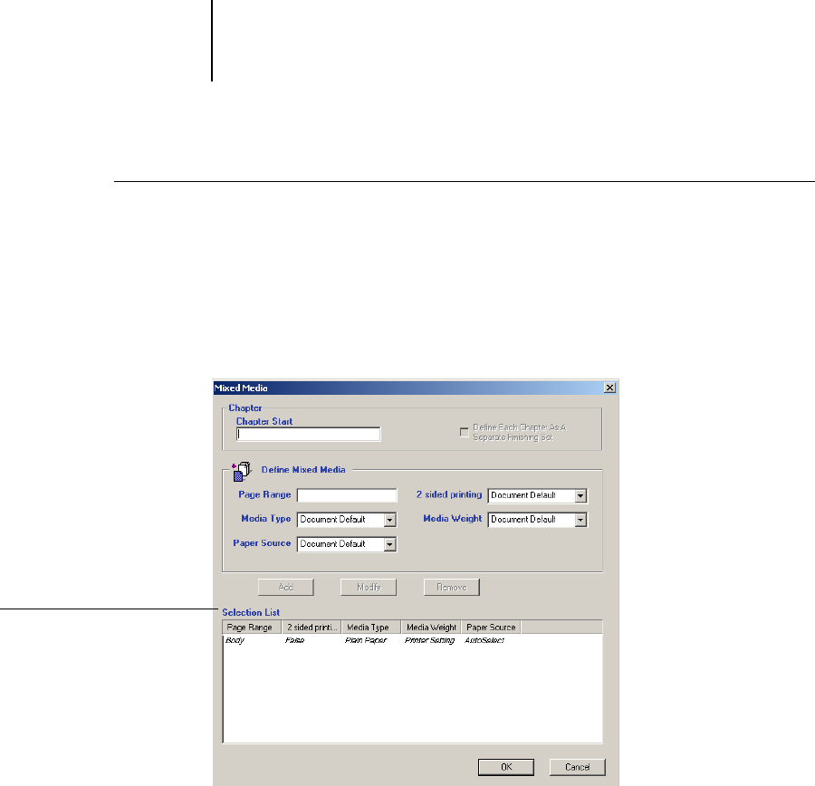 Note:Information in italics in the Selection List is the default media type