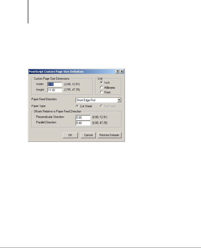 4. Choose PostScript Custom Page Size from the Paper Size menu.