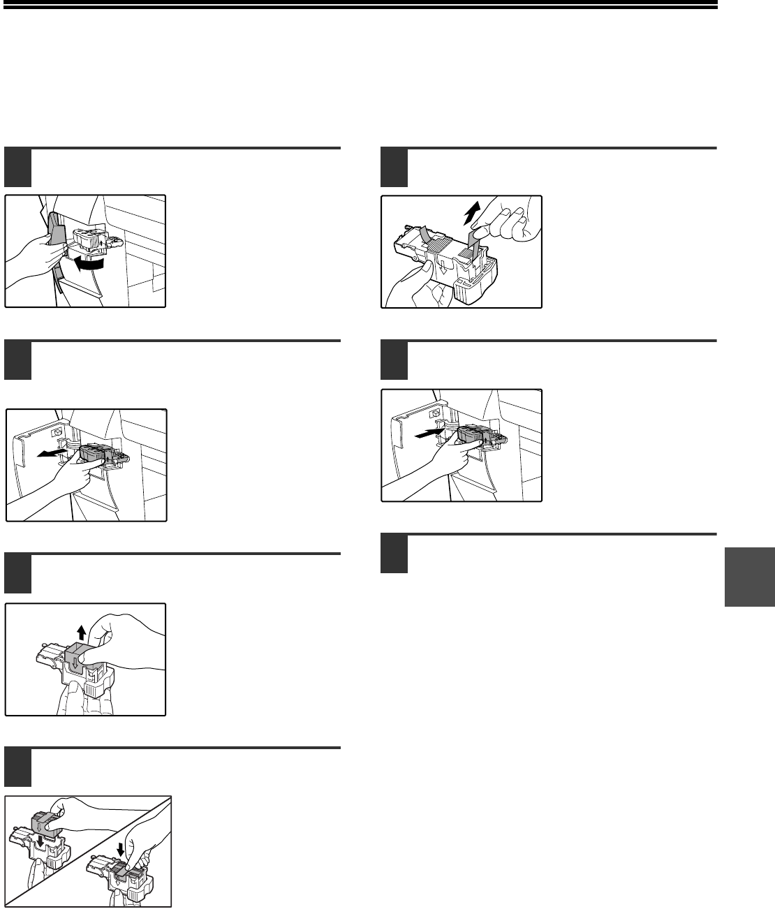 When the message "ADD STAPLES." appears, replace the staple cartridge as follows: